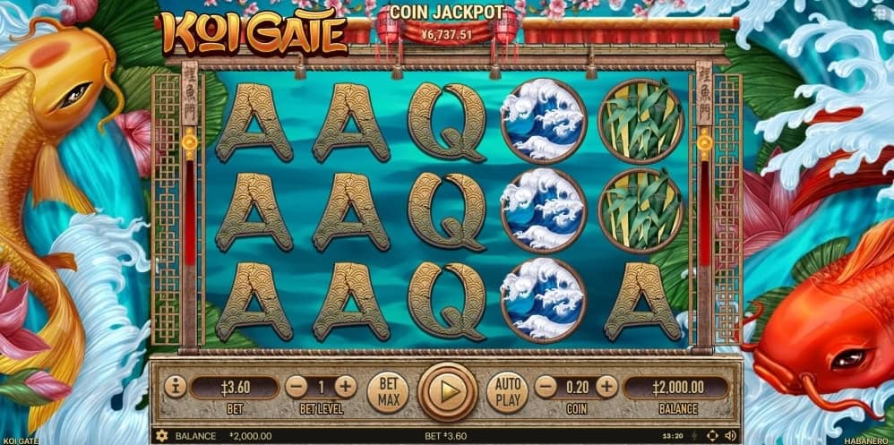 Begitu kamu masuk ke layar permainan, nuansa damai langsung terasa. Air mengalir tenang di latar belakang, dengan gerbang torii khas Jepang berdiri kokoh, seolah membuka pintu menuju keberuntungan. Ditambah lagi, simbol-simbol bernuansa oriental seperti naga air, bunga sakura, dan tentu saja ikan koi—semuanya tampil dengan grafis yang menyegarkan dan menenangkan mata.